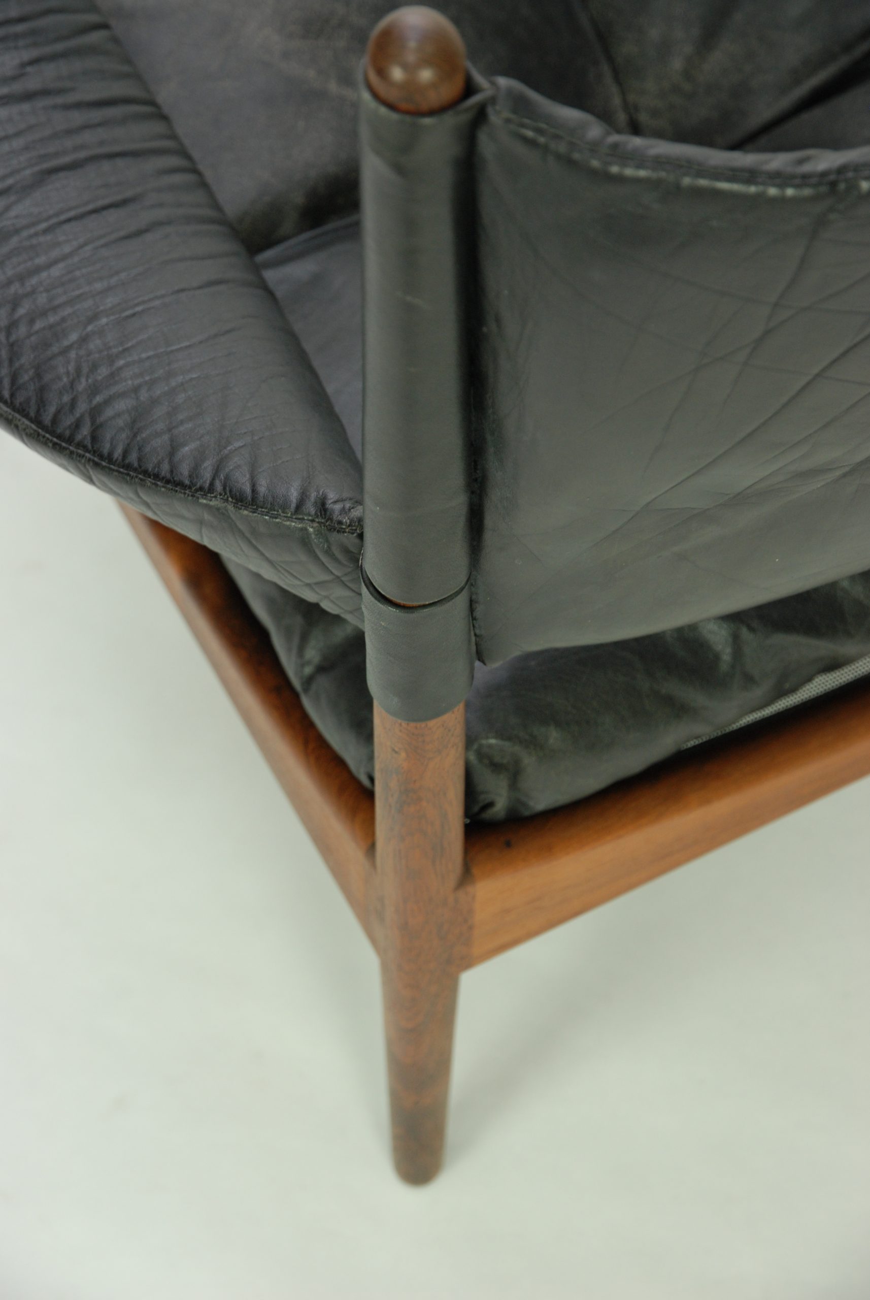 Wytworny fotel z drewna palisandru. Design KRISTIAN SOLMER VEDEL. Poduszka, oparcie oraz podłokietniki z naturalnej skóry. Produkt duński lat 60/70-tych. Sygnowany.