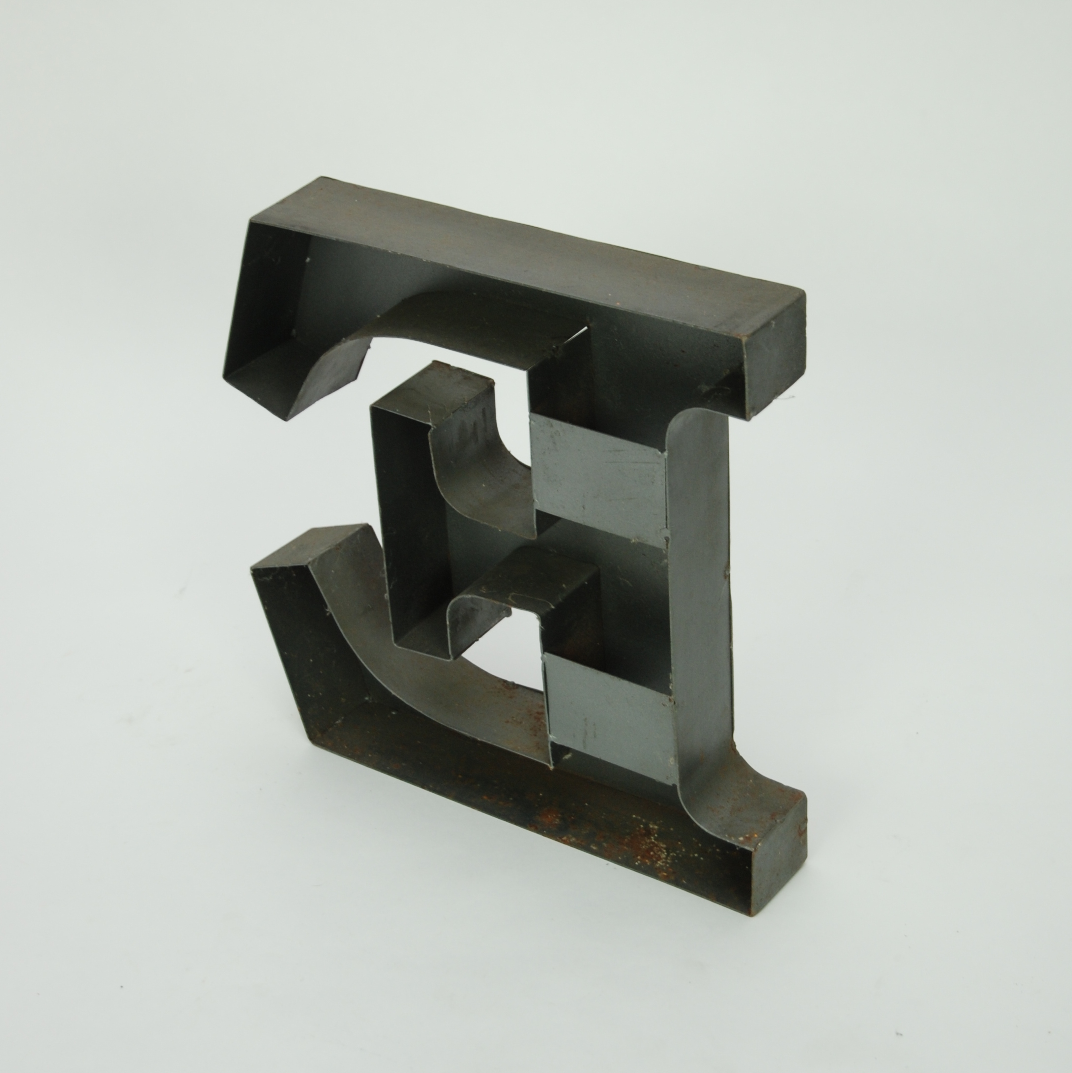 Metalowa, trójwymiarowa litera. Produkt współczesny.