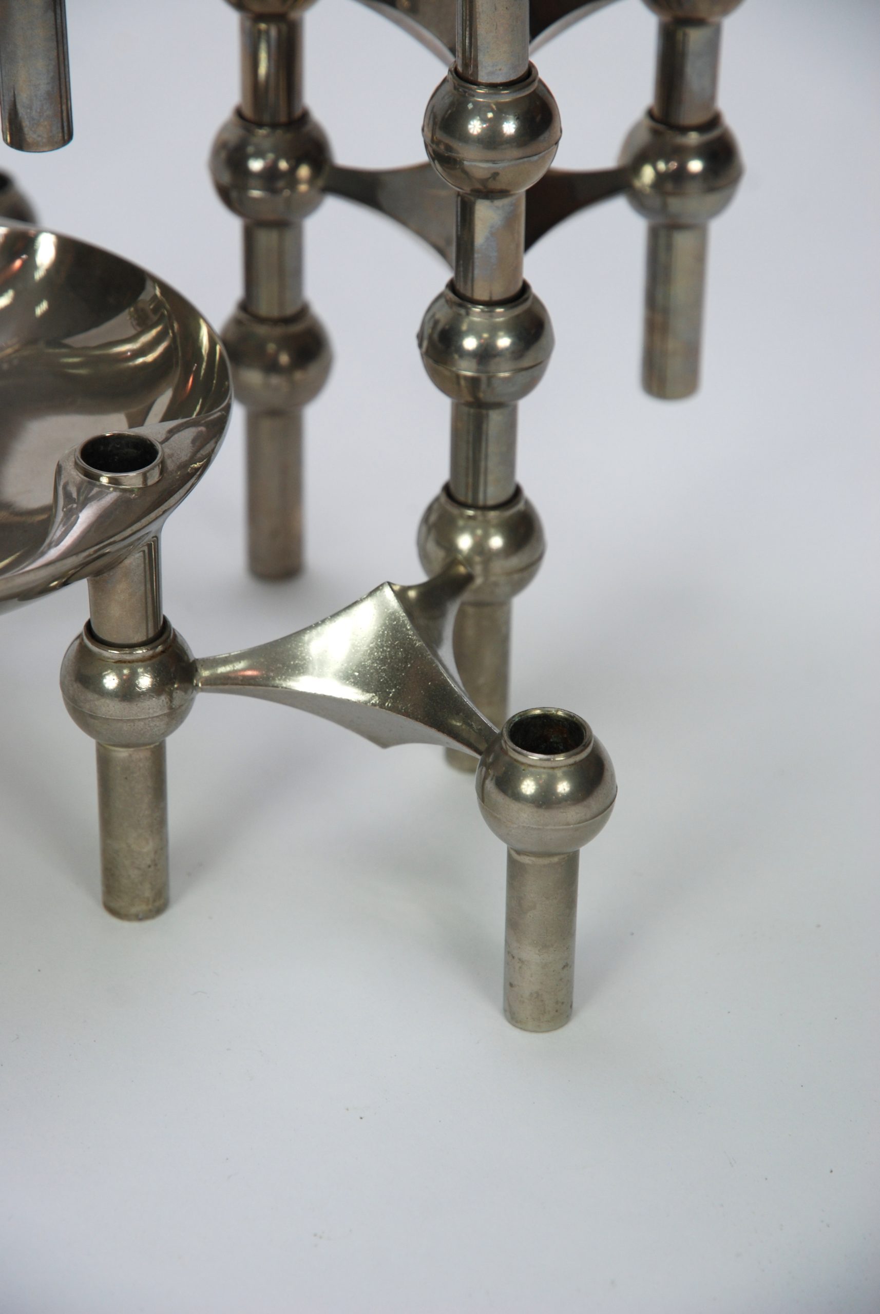 Kultowe świeczniki, FRITZ NAGEL & CEASAR STOFFI dla BMF. Sam tworzysz formę i decydujesz o jej rozmiarach. Zbieranie i powiększenie kolekcji daje wspaniały efekt. Ten zestaw składa się z 11 elementów. 9 świeczników + 2 miski BMF. Miski mają inny rozstaw ale przy nieregularnej konstrukcji jest to bez znaczenia.