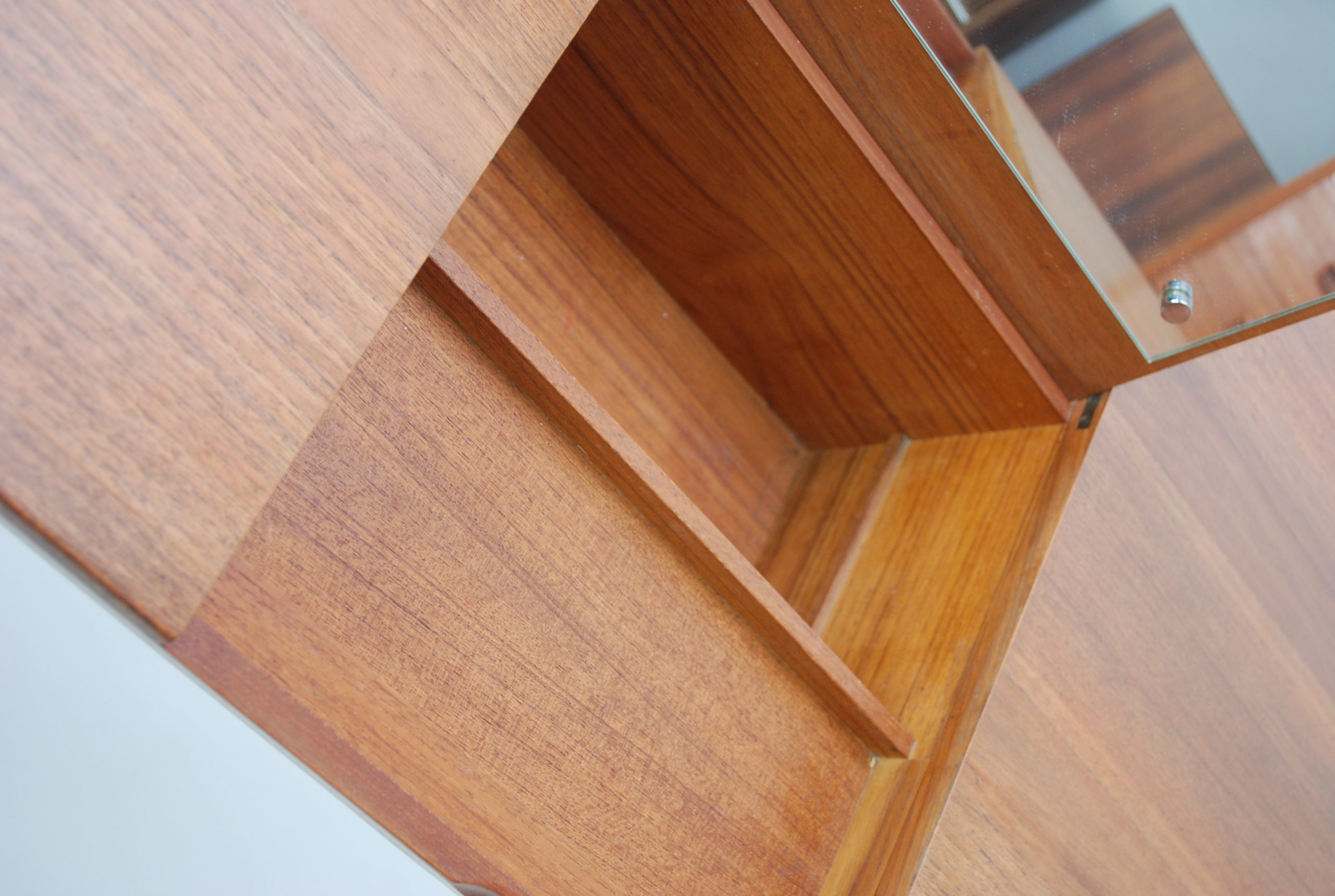 Kwintesencja duńskiego modernizmu. Wykonane z wielkim pietyzmem zaskakuje ergonomią. Blat skrywa lusterko, pojemny schowek oraz szufladę. Manufaktura Haslev Møbelsnedkeri. Projekt Severin Hansen. Produkt duński lat 50/60. Unikat.