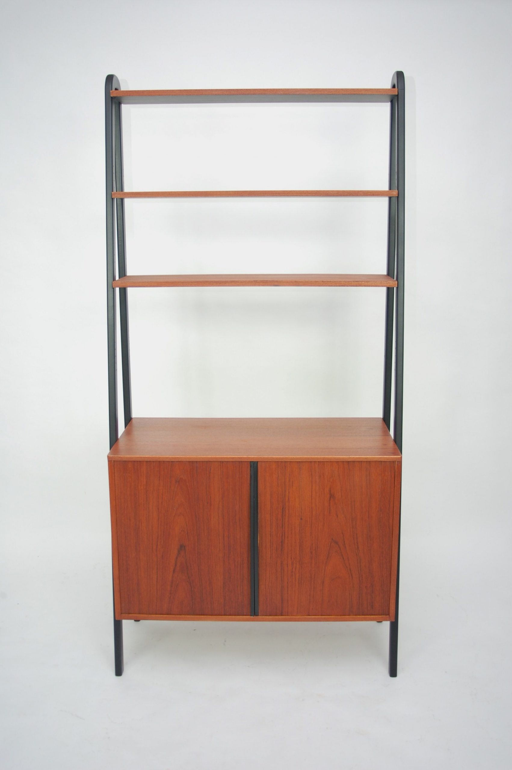 Modernistyczny regał. Komódka z półką. Dwie środkowe półki regulowane. Produkt lat 60-tych.