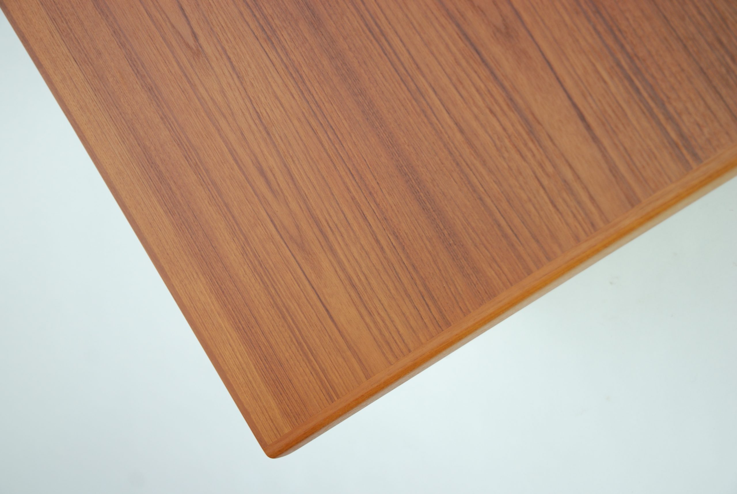 Modernistyczny, duński stolik. Zgrabna forma z praktyczną półką. Blaty fornirowane, nogi i obrzeża z masywu teku. Drewno olejowane. Oryginalny produkt lat 60-tych.